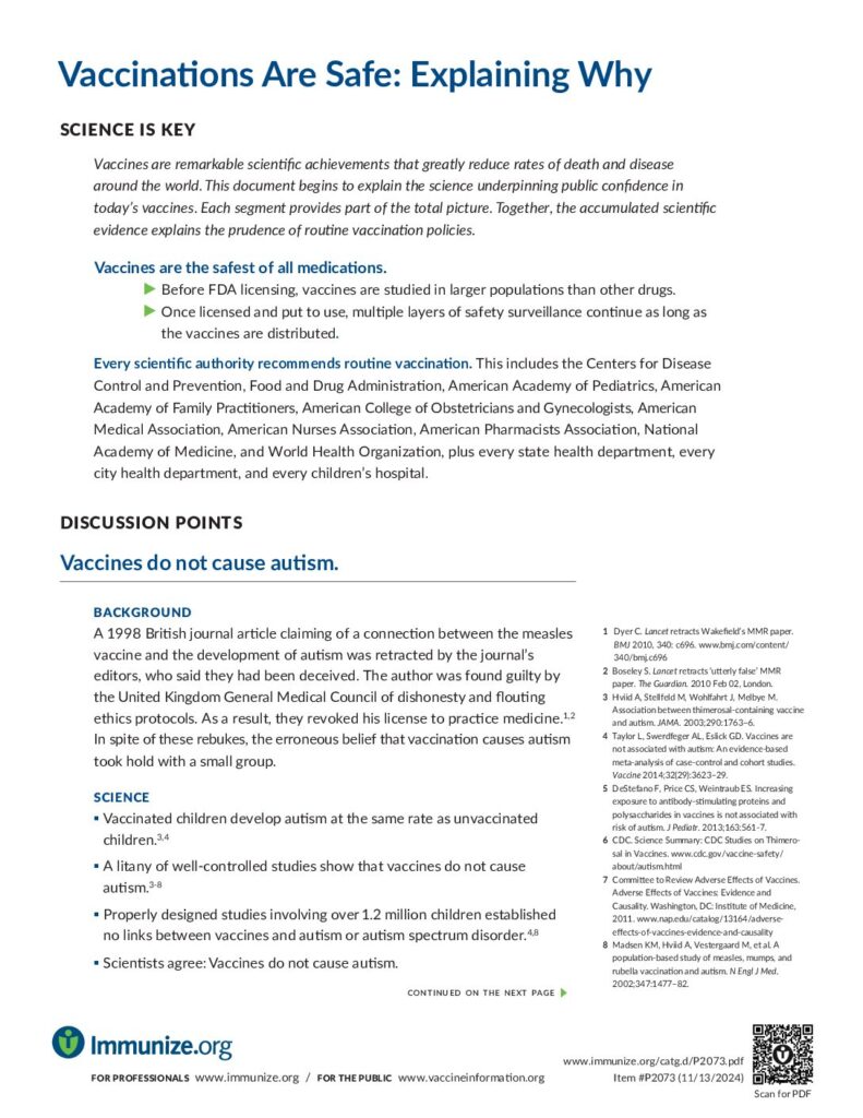 CDC summarizes information about vaccine safety and connects you to additional resources.