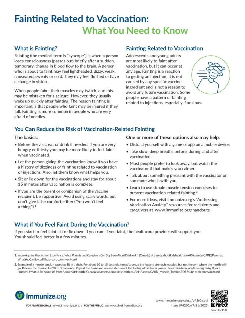 This 1-page handout describes strategies that can be followed before, during, and after the vaccination visit to improve the vaccination experience for children. Several useful resources are also listed.