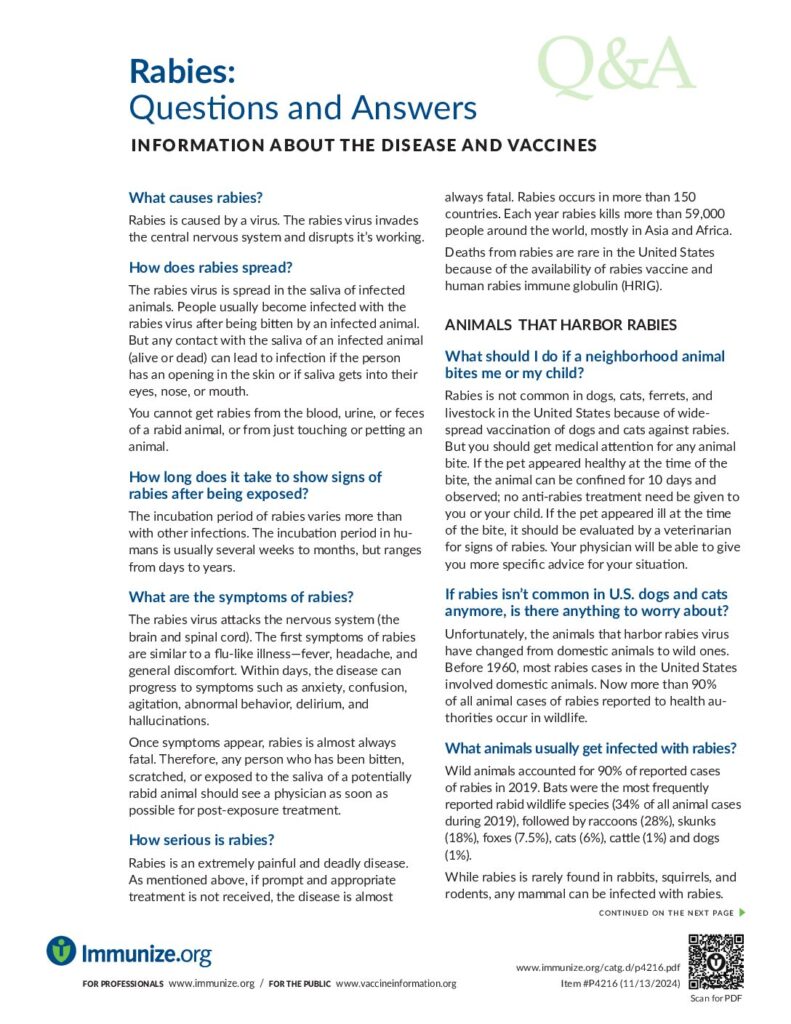 Questions and answers about rabies and vaccines from the Vaccine Education Center at the Children’s Hospital of Philadelphia.